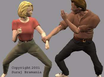 the hand, while standing erect. The opponent will have to bend forward in order to