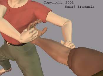 the opponent's hand faces his back. This can be done by pushing your thumb into the opponent